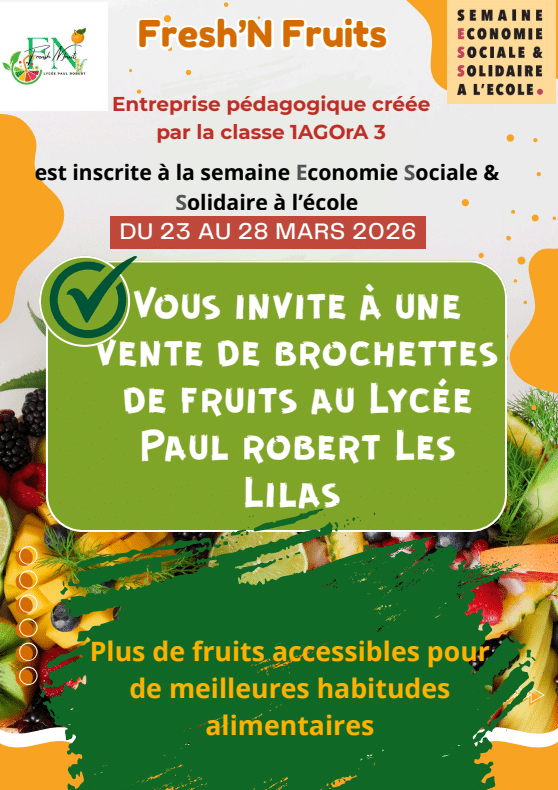 La classe de 1ère professionnelle AGORA3 du Lycée Paul Robert aux Lilas, accompagnée de son enseignante d’économie-gestion, mène un projet d’entreprise pédagogique sociale et solidaire nommée « Fresh’N Fruits». Ce…