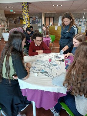 Lundi 23 mars, dans le cadre de la Semaine de l’ESS à l’Ecole, les éco-délégué·es se sont retrouvé·es au CDI pour l’activité « Enquête dans la penderie ! », sur le thème du textile responsable, animée par deux intervenantes de l’association Lafi Bala.