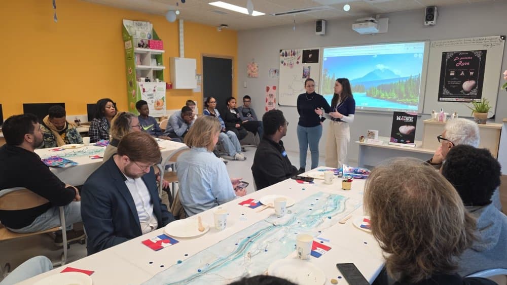 Au Lycée Polyvalent Pierre Mendès France à Ris-Orangis (91), des représentantes d’Aroéven ont été chaleureusement accueillies par les élèves, avant d’inviter ces derniers à réfléchir à leur pouvoir d’agir en tant que citoyen·nes sur le thème qu’iels avaient désigné : « De la source au verre, l’eau, un héritage à conserver ».