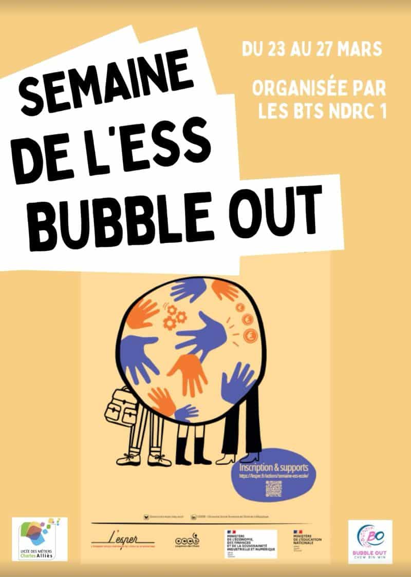 Au Lycée des Métiers Charles Allies de Pézenas (34) : les élèves de BTS NDRC inscrits au projet « Mon ESS à l’Ecole » ont décidé de mettre en valeur leur projet de SCIC Bubble Out (collecteur de chewing-gum), en menant des actions tout au long de la semaine :