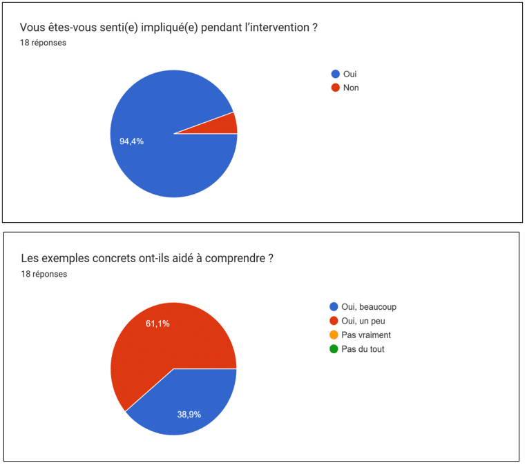 Au Lycée Georges Pompidou de Castelnau-le-Lez (34) : une élève de BTS Support de l’Action Managériale a organisé une intervention de découverte de l’ESS avec la correspondante régionale de L’ESPER, auprès de sa classe. Après avoir pris contact avec L’ESPER, formulé le besoin, défini le calendrier et coordonné les éléments logistiques, cette élève a également diffusé un questionnaire de satisfaction à ses camarades suite à l’intervention (voir quelques retours ci-dessous). Cette démarche s’inscrit en accord avec une de ses enseignantes dans le cadre de la validation de la matière « gestion de projet ».